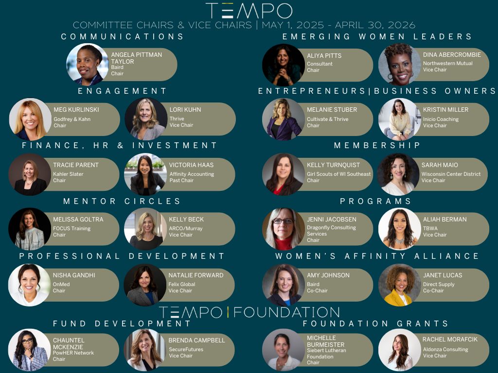 Communication, Diversity, Equity & Inclusion, and Membership. If you are interested in getting involved on a committee, click here to learn more. To view Emerging Women Leaders committees, click here. Interested in serving on a TEMPO committee? Aspire to lead one of our TEMPO committees? Have a committee to join in mind or not sure where to start? Email [email protected] to note your interest.